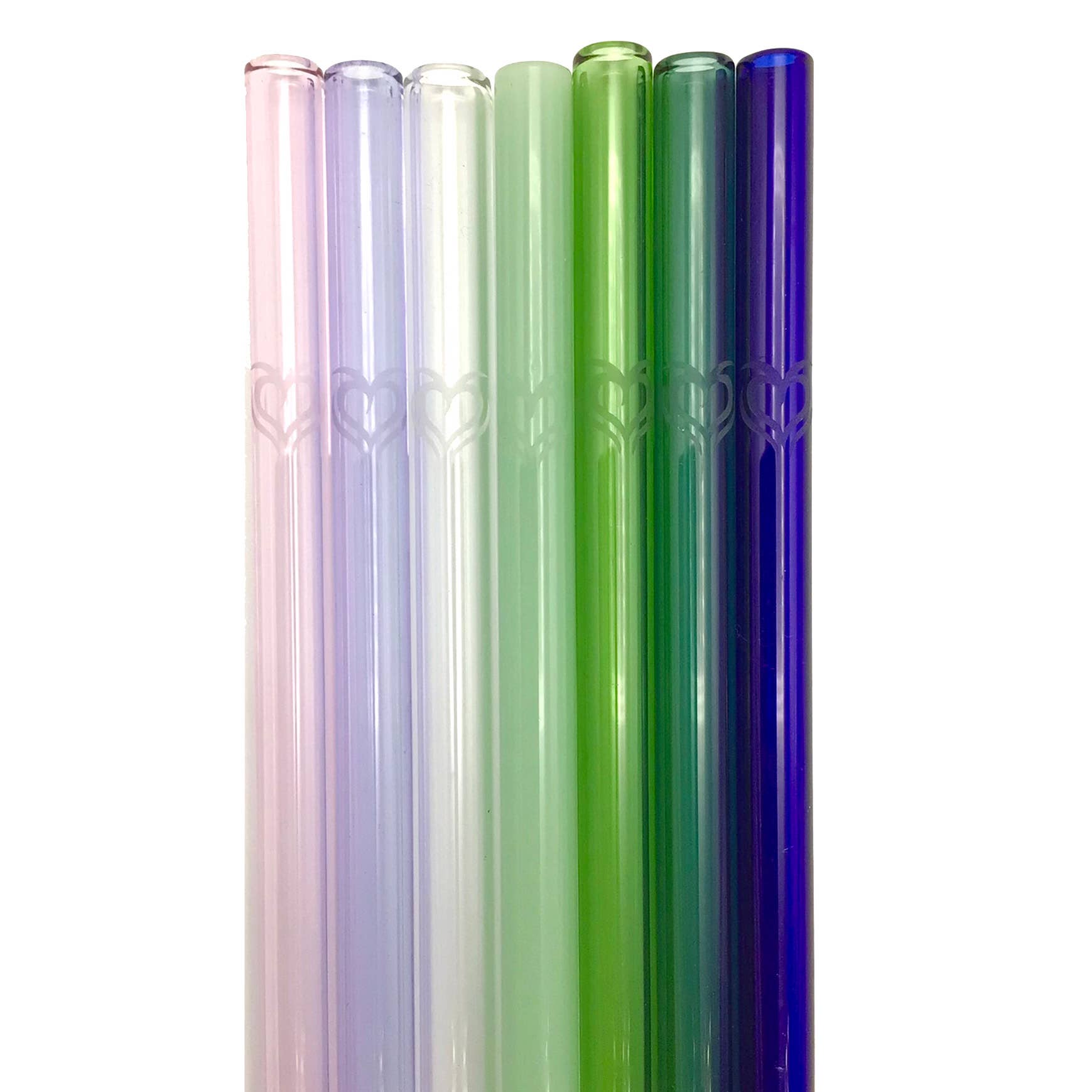 These reusable glass straws are 9" , 11", 12" in length and 8mm in width with a 1.5mm wall thickness.
