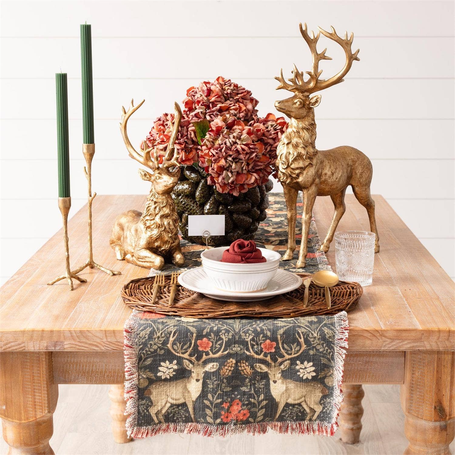 Our Balmoral Deer Print Table Runner is a charming addition to any kitchen tabletop. This 72" L x 13" H cotton runner, available in a pack of two, brings a touch of elegance to your dining area.